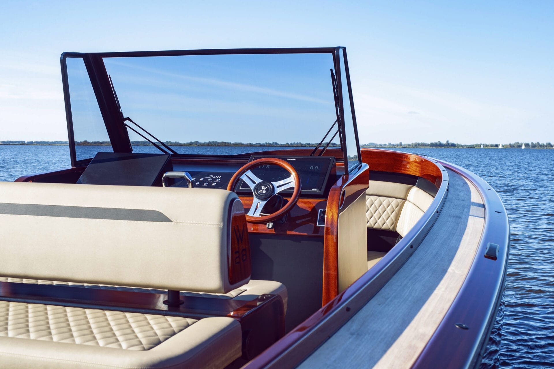 Designed in collaboration with Vripack, world-famous yacht designers, the Woodler 28 combines modern innovations with traditional craftsmanship. A unique and smart fusion of aluminium and wood, resulting in a luxurious, open, and fast yacht.